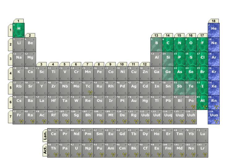 Keywords: DPS raw.png Periodic System of the Elements Note Lanthanum and Actinium are often placed under lanthanoids and actinoids Grey color indicate metals Green color indicates non-metals Green/grey color indicate semi-metals own 2009-06-09 Simon Gjerløv from Bitfrost Interacive Denmark SimonGjer at http //da wikipedia org da wikipedia Released into the public domain by the author da wikipedia SimonGjer original upload log page da wikipedia DPS_raw png 2009-06-09 15 23 SimonGjer 1016×690× 211864 bytes <nowiki>Periodic System of the Elements Made by Simon Gjerløv from Bitfrost Interacive Denmark Note Lanthanum and Actinium are often placed under lanthanoids and actinoids Grey color indicate metals Green color indicates non-metals Green/grey color indic</nowiki> Periodic table |