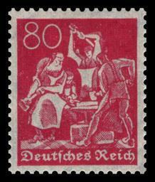 | Keywords: DR 1921 186 Schmiede-Arbeiter.jpg / Briefmarkenbeschreibung Dauermarkenserie Ziffern Arbeiter und Posthorn definitive stamp series numbers workers and post horns Graphics by Paul Neu Ausgabepreis 80 Pfennig First Day of Issue / Erstausgabetag Oktober 1921 WZ Rauten und März 1922 WZ Waffeln Michel-Katalog-Nr 166 und 186 Deutsches Reich scanned by NobbiP 2010-10-23 scanned by NobbiP 1940 <gallery> File DR WZ 1 Rauten jpg WZ Rauten File DR WZ 2 Waffeln jpg WZ Waffeln File DR 1921 177 Ziffern im Rechteck jpg 158 / 177 File DR 1921 178 Ziffern im Rechteck jpg 159 / 178 File DR 1921 179 Ziffern im Rechteck jpg 160 / 179 File DR 1921 180 Ziffern im Rechteck jpg 161 / 180 File DR 1921 181 Ziffern im Rechteck jpg 162 / 181 File DR 1921 182 Ziffern im Rechteck jpg 163 / 182 File DR 1921 183 Ziffern im Rechteck jpg 164 / 183 File DR 1921 184 Schmiede-Arbeiter jpg 165 / 184 File DR 1921 185 Ziffern im Rechteck jpg - / 185 File DR 1921 187 Bergmänner jpg 167 / 187 File DR 1921 188 Bergmänner jpg 168 / 188 File DR 1921 189 Landwirtschaftliche Arbeiter jpg 169 / 189 File DR 1921 190 Landwirtschaftliche Arbeiter jpg 170 / 190 File DR 1921 191 Posthorn jpg 171 / 191 File DR 1921 192 Posthorn jpg 172 / 192 File DR 1921 193 Posthorn jpg 173 / 193 File DR 1921 194 Ziffern im Queroval jpg 174 / 194 File DR 1921 195 Ziffern im Queroval jpg 175 / 195 File DR 1921 196 Landwirt mit Pferd und Pflug jpg 176 / 196 </gallery> Philately Schmiede-Arbeiter Nennwert 80 Pfennig 1921-10 und 1922-03 Neu unbekannt Buchdruck 166 und 186 Deutsches Reich Workers on stamps 1921 stamps of Germany Blacksmiths on stamps |