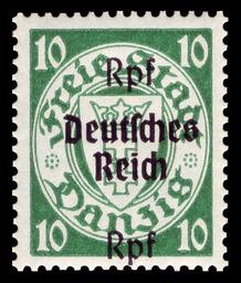 | Keywords: DR 1939 720 Danzig.jpg / Briefmarkenbeschreibung Danziger Dauermarkenserie mit Aufdruck definitive stamp series of Gdansk with overprints Ausgabepreis 10 Pfennig First Day of Issue / Erstausgabetag 28 September 1939 Michel-Katalog-Nr 720 Deutsches Reich auf 292 Danzig vom Oktober 1938 scanned by NobbiP 2009-06 Max Buchholz 1878 1942 PD-old-auto-1996 1944 PL Max Buchholz German stamps review keep <gallery> File DR 1939 716 Danzig jpg 716 auf 289 File DR 1939 717 Danzig jpg 717 auf 215 File DR 1939 718 Danzig jpg 718 auf 290 File DR 1939 719 Danzig jpg 719 auf 291 File DR 1939 721 Danzig jpg 721 auf 236 File DR 1939 722 Danzig jpg 722 auf 293 File DR 1939 723 Danzig jpg 723 auf 245 File DR 1939 724 Danzig jpg 724 auf 294 File DR 1939 725 Danzig jpg 725 - File DR 1939 726 Danzig jpg 726 auf 295 File DR 1939 727 Danzig jpg 727 auf 296 </gallery> Philately Wappen von Danzig GdaĆsk Nennwert 10 Pfennig 1939-09-28 Buchholz unbekannt Buchdruck 720 Deutsches Reich auf 292 Danzig Deutsches Reich overprints on stamps of the Free City of Danzig Coats of arms of GdaĆsk on stamps |