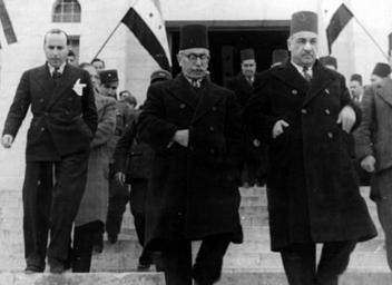 | Keywords: Dr Munir al-Ajlani4.png en Prime Minister Jamil al-Ulshi center in 1943 with Mohammad al-Ayesh the Minister of Economy under President Taj al-Din al-Hasani To the left walking a few steps behind is Dr Munir al-Ajlani Hasani ™s son-in-law who was also Minister of Youth Affairs own Alhistorian Munir al-Ajlani |