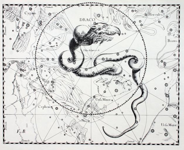 | Keywords: Draco Hevelius.jpg en The en Draco constellation constellation from Uranographia by Johannes Hevelius The view is mirrored following the tradition of celestial globes showing the celestial sphere in a view from outside Лист B Д акон Атласа звёздного неба Яна Гевелия п едставляющего собой п иложение к его книге «Prodromus Astronomiæ» опубликованной в 1690 году в Гданьске Изоб ажение зе кальное обычное для небесных глобусов показывающее вид небесной сфе ы «извне» http //contentdm lindahall org/cdm4/document php CISOROOT /star_atlas CISOPTR 479 Atlas Coelestis Johannes Hevelius drew the constellation in Uranographia his celestial catalogue in 1690 1690 Johannes Hevelius PD-old-100 Uranographia by Johannes Hevelius Firmamentum Sobiescianum sive uranographia Draco constellation |