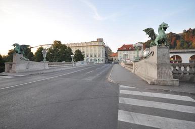 | Keywords: Dragon Bridge (Zmajski Most) (11992450283).jpg The Dragon Bridge Slovene Zmajski most historically also Zmajev most is a road bridge located in Ljubljana the capital of Slovenia It crosses the Ljubljanica River between Kopitar Street Kopitarjeva ulica and Ressel Street Resljeva cesta to the north of the Ljubljana Central Market at Vodnik Square It was built in the beginning of the 20th century when Ljubljana was part of the Austro-Hungarian Monarchy As one of the best examples of reinforced concrete bridges and of the Vienna Secession style the bridge is today protected as a technical monument It is intended primarily for motorised traffic Legend There is a legend that Jason was the founder of Ljubljana and he and his Argonauts killed a dragon This is one of the four dragon statues in the bridge According to local legends when a virgin crosses the bridge the dragons will wag their tails Some local people have nicknamed this structure mother-in-law because of its fiery nature Wikipedia org http //www flickr com/photos/jlascar/11992450283/ Dragon Bridge Zmajski Most 2012-08-16 07 31 http //www flickr com/people/8721758 N06 Jorge Láscar from Australia 46 051976 14 510385 source Flickr Photography cc-by-2 0 Jorge Lascar http //flickr com/photos/8721758 N06/11992450283 2014-04-02 06 51 48 cc-by-2 0 Artwork PD-old-70-1923 Photographs by Jorge Lascar Files uploaded by Russavia Dragon Bridge Ljubljana |