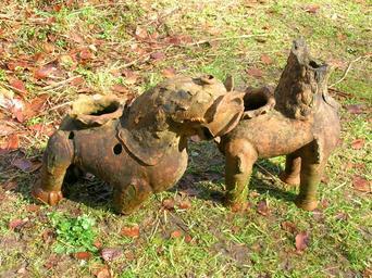 Keywords: Dragon Planters.JPG en A pair of 19th Century Dragon shaped pottery planters from Kindrogan House Enochdu Scotland Own Rosser1954 Roger Griffith 2009-03-27 Ceramic flowerpots Statues of dragons Kindrogan House