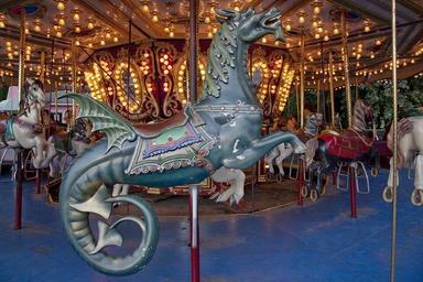 Keywords: dragon wooden carousel retro nostalgic merry-go-round vintage colorful fun childhood lights