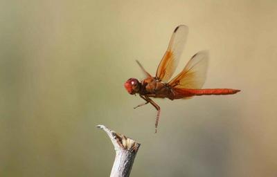 Keywords: dragonfly flame skimmer insect bug libellula saturate flying close up macro red wildlife nature portrait branch