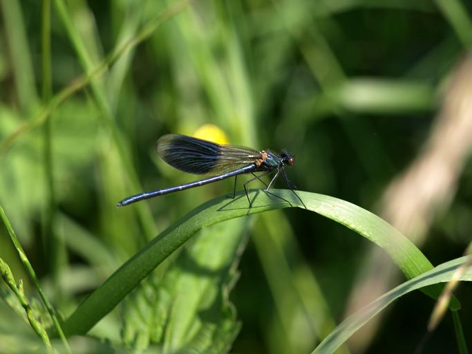 Keywords: dragonfly grass nature wing demoiselle calopteryx splendens splendens blue green blade of grass summer males