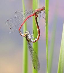 Keywords: Dragonfly mating wheel.jpg Damselfly mating wheel file name is in error Karrackoo; Camera Konica Minolta Dimage Z2 2004-05-30 Karrackoo GFDL relicense Pyrrhosoma nymphula Zygoptera sex