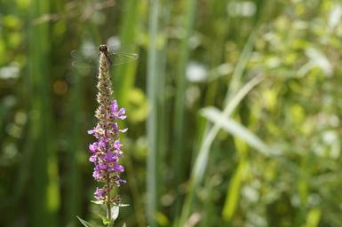 Keywords: dragonfly red dragonfly red flight insect insect wetlands flora fauna waters near bank blood-red loosestrife wing filigree translucent sit landed