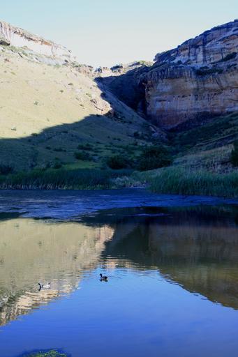 Keywords: drakensberg mountains water landscape scenery natural water reflection blue cleft in mountains nature stream