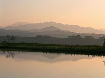 Keywords: mountain vector lake art grass sea river volcano sunset rock red scene sky background hill sunlight outline nobody nautical copy view sierra peace yellow stream graphic evening simple shape abstract illustration