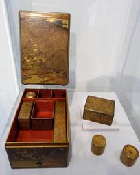 Keywords: Drawered Handbox with Four-Season Motif and Interior Cosmetic Boxes with Scrolling Floral Designs, view 1, Japan, early Edo period, lacquered wood - Arthur M. Sackler Museum, Harvard University - DSC01110.jpg en Exhibit in the Arthur M Sackler Museum Harvard University Cambridge Massachusetts USA This artwork is in the public domain because the artist died more than 70 years ago 2015-04-11 11 39 05 own Daderot other versions PD-old-70 cc-zero Lacquerware of Japan in the Arthur M Sackler Museum