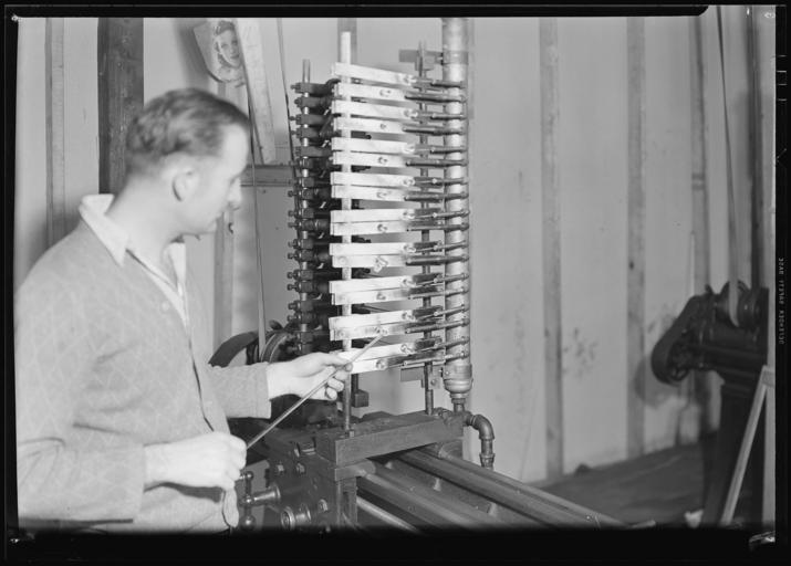 | Keywords: nara:arcid=518649 u.s. national archives usnationalarchives lewis hine lewishine 1937 millville new jersey newjersey the great depression thegreatdepression blackandwhite monochrome indoor photo border black and white Original Caption: Millville, New Jersey - Glass wool. Frederick and Dimmock. Drawing glass from a tube. Each of the protruded knobs in the front of the iron cross bars is a glass tube which extends to the rear of the machine. The gas flames to the right center of the picture heat the glass tubes. The worker is taking a piece of the molten glass on a glass rod to draw it across the room to the wheel where it is spun. This particular machine moves back as the glass rod is used up, March 1937 U.S. National Archives’ Local Identifier: 69-RP-420 Photographer: Hine, Lewis Subjects: The New Deal Tennessee Valley Authority Works Progress Administration Work Portraits The Great Depression Persistent URL: research.archives.gov/description/518649 Repository: Still Picture Records Section, Special Media Archives Services Division (NWCS-S), National Archives at College Park, 8601 Adelphi Road, College Park, MD, 20740-6001. For information about ordering reproductions of photographs held by the Still Picture Unit, visit: www.archives.gov/research/order/still-pictures.html Reproductions may be ordered via an independent vendor. NARA maintains a list of vendors at www.archives.gov/research/order/vendors-photos-maps-dc.html Access Restrictions: Unrestricted Use Restrictions: Unrestricted Original Caption: Millville, New Jersey - Glass wool. Frederick and Dimmock. Drawing glass from a tube. Each of the protruded knobs in the front of the iron cross bars is a glass tube which extends to the rear of the machine. The gas flames to the right center of the picture heat the glass tubes. The worker is taking a piece of the molten glass on a glass rod to draw it across the room to the wheel where it is spun. This particular machine moves back as the glass rod is used up, March 1937 U.S. National Archives’ Local Identifier: 69-RP-420 Photographer: Hine, Lewis Subjects: The New Deal Tennessee Valley Authority Works Progress Administration Work Portraits The Great Depression Persistent URL: research.archives.gov/description/518649 Repository: Still Picture Records Section, Special Media Archives Services Division (NWCS-S), National Archives at College Park, 8601 Adelphi Road, College Park, MD, 20740-6001. For information about ordering reproductions of photographs held by the Still Picture Unit, visit: www.archives.gov/research/order/still-pictures.html Reproductions may be ordered via an independent vendor. NARA maintains a list of vendors at www.archives.gov/research/order/vendors-photos-maps-dc.html Access Restrictions: Unrestricted Use Restrictions: Unrestricted |