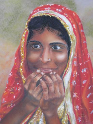 Keywords: drawing signs chalk pastel pastels portrait woman girl kerchief india oriental artistic creation