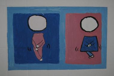 Keywords: drawing toilet students boy girl man woman kids naive wall mural project school project
