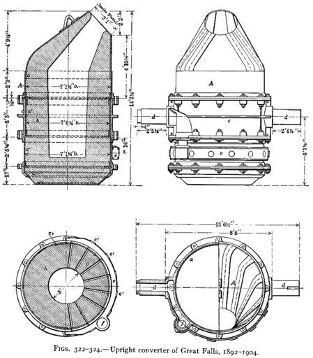 Keywords: Drawings Manhès-David converter Great Falls.png Convertisseur Manhès-David à l'usine de Great Falls Le profil du revêtement interne a été utilisé de 1892 à 1904 en Manhès-David converter at the Great Falls smelter The internal shape was used from 1892 to 1904 1914 https //archive org/details/cu31924004606608 Metallurgy of copper p 304 Heinrich Oscar Hofman 1852-1924 other versions PD-old-70-1923 Manhès-David converters Uploaded with UploadWizard |