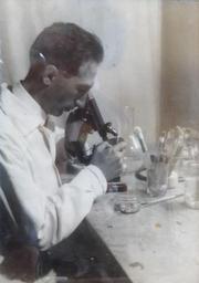 Keywords: DrBogardi Ivan.jpg en Dr Iván Bogárdi Hungarian doctor and chemist hu Dr Bogárdi Iván orvos és kémikus laboratóriumában Saját családi fotó author 1930 PD-old