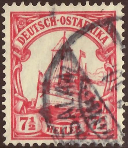 | Keywords: DRCol 1906 DOA MiNr32 B002.jpg Stamp of the German Empire - German colonies - German East Africa; 1906; colonial ship drawing<br /> Stamp Michel No 32; Yvert Tellier No 32 DR-OA ; AFA No 32 DR-OA <br /> Color rosy to red<br /> Watermark Germany No 1 rhombs <br /> Nominal value 7½ Heller<br /> Postage validity 1906 - 1917 scan of original 1906 first issue of the stamp Deutsche Reichspost - Deutsche Post in Deutsch-Ostafrika PD-Tanzania PD-Germany-§134-KUG PD-1923 Philately German colonial ship drawing; Imperial yacht SMS Hohenzollern 1906 Deutsche Reichspost - Deutsche Post in Deutsch-Ostafrika Reichsdruckerei Berlin letterpress printing comb perforation K 14 14½ Deutsches Reich - Deutsche Kolonien Ostafrika Nr 32 1906 stamps of German East Africa 32_2 SMY Hohenzollern on stamps of German East Africa |