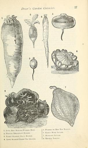 | Keywords: Dreer's garden calendar (16256380230).jpg Dreer' s Lrarden Calendar <br> 27 <br> 1 Long llED Mangel-Wukzel Beet <br> 2 French Breakfast RAmsH <br> 3 Early Scarlet Olive Kadish <br> 4 LoNU Scarlet Shout Twf Kauisu <br> 5 Purple or Red Top Tukmp <br> 3 Early Bush Squash <br> 7 Hubbard Squash <br> 8 Trophy Twmato 43927883 150164 77662 Page 27 Text http //www biodiversitylibrary org/page/43927883 1884 10 5962/bhl title 77662 Henry A Dreer Firm ; Henry G Gilbert Nursery and Seed Trade Catalog Collection Biodiversity Heritage Library Dreer's garden calendar 1875 Garden Stories Catalogs Flowers Gardening Henry A Dreer Firm Internet resource Nursery stock Seeds U S Department of Agriculture National Agricultural Library bhl page 43927883 dc identifier http //biodiversitylibrary org/page/43927883 bhlGardenStories Beet Radish Turnip Squash Vegetables BHLinbloom henry a dreer firm u s department of agriculture national agricultural library bhlgardenstories bhlinbloom Information field Flickr posted date ISOdate 2015-02-04 Check categories 2015 August 24 CC-BY-2 0 BioDivLibrary https //flickr com/photos/61021753 N02/16256380230 2015-08-24 05 55 40 cc-by-2 0 PD-old-70-1923 Squash Dreer's garden calendar Photos uploaded from Flickr by Fæ using a script |
