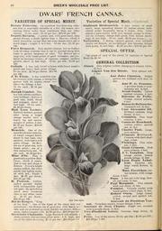 | Keywords: Dreer's wholesale price list (16760291006).jpg 28 <br> DREER'S WHOLESALE PRICE LIST <br> DWARF FRENCH CANNA5 <br> VARIETIES OF SPECIAL MERIT <br> Beaute Poitevine An excellent free-flowering crim- <br> son that is especially valuable in a hot dry season suc- <br> ceeding better under those conditions than any other <br> variety 15 cts each ; 1 50 per doz ; 10 00 per 100 <br> Depute Kavarin A pretty sort with good-sized deep <br> garnet flowers a shade lighter than A Bouvier which it <br> much resembles except that the truss stands erect and is <br> much larger ; height 5 to 6 feet 50 cts doz ; 4 00 per <br> 100 <br> Fiirst Bismarck Eich scarlet crimson but so distinct <br> from all other crimsons that it can be planted along with <br> them in perfect harmony of color Tlie flowers are of <br> large size with road petals of good substance and pro- <br> duced in immense trusses ; of vigorous compact uniform <br> growth about 3 J feet high 50 cts per doz ; 4 00 per <br> 100 <br> Ooliath A fine rich dwarf crimson with broad massive <br> petals and heavy dark green foliage <br> 15 cts each ; 1 50 per dozen ; 12 00 <br> per 100 <br> J D Eisele A fine vermilion scar- <br> let overlaid with orange a strong free <br> grower with its trusses raised well <br> above the foliage 4 feet Ifcr t <br> 15 cts each ; 1 50 per <br> dozen <br> Joseph Combet This <br> is a rich velvety cardinal <br> very brilliant ; flowers of <br> good size habit dwarf <br> and compact about 3 <br> feet high 15 cts each ; <br> 1 50 per dozen <br> Mad Leon Leclerc <br> Entirely distinct ground <br> color being a bright <br> orange scarlet witli a <br> heavy tip and narrow <br> margin of yellow 5 feet <br> 1 25 per dozen ; 10 00 <br> per 100 <br> Menelek One of the <br> mostfloriferous varieties <br> of dwarf compact habit <br> about 3k feet high very <br> uniform with heavy rich <br> green foliage Its flow- <br> ers are of good size with <br> broad petals ; are of a <br> rich nasturtium red 15 <br> cts each ; 1 50 per doz <br> Mine d'Or This is <br> practically a yellow Mad <br> Crozy which it resem- <br> bles in size and shajje of <br> flowers It is of a bright <br> canary-yellow the lower <br> petals very lightly mark- <br> ed with red ; height 3 <br> feet 1 25 per dozen ; <br> 10 00 per 100 <br> R Pearson Golden- <br> yellow ground dotted <br> with innumerable light <br> red spots the spots being <br> much more numerous <br> than in any other varie- <br> ty 1 25 per dozen ; <br> 10 00 per 100 <br> Roi de Koiiijes King <br> of the lieds One of the finest of the many reds yet <br> introduced ; the flowers are of good size with heavy pe- <br> tals and are produced on stout thickly-set stems ; foliage <br> green ; hal i compact ; 3 ft 1 25 per doz ; 10 00 per lOd <br> Se retaire Chabanne Large flowers of rich salmon a <br> shade entirely distinct from other sorts ; 4 ft high and <br> one of the freest-flowering 1 25 per doz ; 10 00 per 100 <br> Varieties of Special Merit ” Continued <br> Stadtrath Heidenreich A new vaiiety of great <br> merit large spreading flowers 5' inches across indi- <br> vidual petals frequently being 2 inches wide Color <br> almost a pure scarlet with just enough orange to inten- <br> sify its richness foliage dark green with bronze mark- <br> ings 4 feet high 30 cts each ; 3 00 per dozen 1 <br> Tarrytown A strong vigorous grower with brilliant <br> cherry red flowers an exceedingly free bloomer foliage <br> dark green 3h feet high 1 25 per doz ; 10 00 per 100 <br> SPECIAL OFFER <br> One plant of each of the above 14 varieties of Special <br> Merit for 1 50 <br> GENERAL COLLECTION <br> Alsace Pale sulphur yellow changing to creamy white <br> 4i feet <br> August Van den Heede Rich salmon red <br> 4 feet <br> Ami Jules Chretien Bright <br> apricot red suffused with rose 3h <br> feet <br> Ami P G Pezeaux <br> A peculiar shade of pom- <br> egranate red 3 feet <br> Avant Garde Yellow <br> spotted crimson 4 feet <br> Baronne de Poilly <br> Orange shaded salmon <br> 4 feet <br> Baron de Belleroche <br> Amaranth red 3i feet <br> Czar Alexander III <br> Brilliant carmine large <br> flower 3-2 feet <br> Columbia Fine large <br> crimson 3 feet <br> Comte de Bouchaud <br> Golden yellow spotted <br> red 4;i feet <br> Charles Paul Large <br> pure salmon <br> Francois Billard <br> Crimson with dark shad- <br> ings 4 feet <br> FJaming-o Fine crim- <br> son 3 feet <br> Giant Crimson Rich <br> pure crimson 4 feet <br> J C Vaughan Deep <br> orange scarlet bronzy <br> purple foliage 44 feet <br> Leon Pepin Lehal- <br> Caimine red <br> round flowers ih <br> leur <br> large <br> feet <br> Mme Favrichon Sat- <br> iny carmine with orange <br> 4 feet <br> A fine red with large flow- <br> sheen <br> Papa <br> er s and truss Si feet <br> Sam Tbelease <br> Paul Mar iuant Fine salmon <br> with rose sheen 3 feet <br> Premier Crimson scarlet with <br> broad golden-yellow edge 3k feet <br> Robert Owen Large canary <br> yellow striped and spotted red <br> 3 feet ˘ <br> Souvenir du President Car- <br> not Vermilion scarlet bronze foliage 5 feet <br> Souvenir de Jean Chaure Bright red overlaid <br> with a purple sheen 3k feet <br> Vice-Presi lent Luizet Carmine large flower 3J <br> feel <br> Price Any of the above 50 cts per doz ; 4 00 per 100 ; <br> 35 00 per 1 000 45213643 161077 84662 Page 28 Text Winter Edition http //www biodiversitylibrary org/page/45213643 1899 Dreer Henry A Firm Biodiversity Heritage Library Dreer's wholesale price list / Garden Stories Bulbs Plants Catalogs Dreer Henry A Firm Nurseries Horticulture Nursery stock Pennsylvania Philadelphia Seed industry and trade Seeds Mertz Library The New York Botanical Garden bhl page 45213643 dc identifier http //biodiversitylibrary org/page/45213643 bhlGardenStories Flowers Cannas BHLinbloom bulbs plants dreer henry a firm nurseries horticulture mertz library the new york botanical garden bhlgardenstories bhlinbloom Information field Flickr posted date ISOdate 2