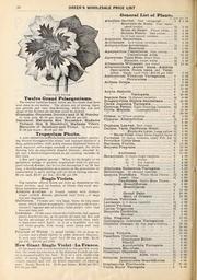 | Keywords: Dreer's wholesale price list (16786153125).jpg 38 <br> DREER'S WHOLESALE PRICE LIST <br> TROP-EOLUM Phcebe <br> Twelve Grand Pelargoniums <br> The twelve varieties listed below are the fiuest that have <br> ever come to our notice The plants are of strong vigor- <br> ous growth and very free-flowering while the size and <br> shape of the flowers are all that could be desired <br> Champion Countess Dorothy and H M Stanley <br> ¢2i inch pots l -25 per dozen 10 00 per 100 <br> Decorator Mermeris Mrs Bradshaw Madame <br> Thibaut Mrs R Sandiford Madame Vibert <br> Marquise of Salisbury and Victor 2\ inch pots <br> 1 00 per dozen ; 8 00 per 100 <br> Tropseolnm Phoebe <br> A most attractive anc deliciously-scented variety produc- <br> ing flowers throughout the winter and summer season of a <br> deep golden-yellow with a rich crimson feathered blotch in <br> each segment outer edges notched or scolloped the whole <br> foiming into an exquisitely shaped blossom ; admired by <br> all and a decided improvement on all existing varieties in <br> this class <br> A free and vigorous grower When in the height of its <br> perfection strings of growth resplendent with its glorious <br> parti-colored flowers can be cut for decoration 8 to 10 feet <br> long a decided acquisition as a trailer in the greenhouse or <br> conservatory in early spring and out doors during summer <br> 20 cts each 2 00 per doz ; 15 00 per 100 <br> Single Violets <br> The varieties offered below are fully as desirable as the <br> finest doubles and for freedom of bloom they excel any- <br> thing heretofore offered <br> Admiral Avellan A French variety with distinct <br> bright reddish flowers produced very freely ; of large <br> size and fragrance <br> California Flowers are very large borne on long stout <br> stems which makes it especially valuable as a cut-flower ; <br> intensely fragrant and of a clear violet purple color that <br> does not fade out <br> LiUxonne Of the same size as the California but appears <br> nearly double its size as the petals all open out flat and <br> has the advantage of flowering continuously from early <br> in September until April It is of a beautiful rich but <br> soft violet -purple with strong stout stems and very <br> fragrant <br> Princess of Wales A grand variety not as large as <br> Luxonm and a shade lighter in color intensely fragrant <br> 2i inch pots Ready April 1st 60 cts per doz ; 4 00 <br> per 100 35 00 per 1000 <br> New Giant Single Violet ” La France <br> Of the many new violets introduced in the pa st few years <br> this the latest introduction of the foremost French special- \ <br> ist is unquestionably the best It is of a rich violet-blue <br> color of strong vigorous growth free in liloom and deli- <br> I iously scented and will no doubt supersede all existing <br> sorts Ready March 1st 1 00 per dozen ; 8 00 per 100 ; <br> 70 00 per 1000 I <br> General List of Plants <br> iL pots <br> Abutilon Savitzi New variegated 2 <br> Souvenir de Bonn Fine varie- <br> gated bedded 2J <br> Boule de Neige Finest white 2 <br> Golden Fleece Best yellow 2 <br> ' – In 10 best named varieties 2 <br> Acalypha Macafeana 2 <br> Achimenes In 6 choice varieties tubers <br> Achyranthus Acuminata 2\ <br> Emersoni 2 J <br> Agapanthus Umbellatus blue strong <br> Umbellatus Alba <br> Ageratum Tapis Blue dwarf blue 2 <br> Blanche dwarf white 2 <br> AUamanda Williamsii new dwarf 2 <br> Alternanthera Aurea nana Amoena <br> Spectabilis Rosea nana and Versi- <br> color Ready April 1 5th ” 25 00 per 1000 <br> Anthericum Vittatum Variegatum 3 <br> Picturatum 3 <br> Ardisia Crispa 2 <br> 3 <br> 4 <br> Aralia Sieboldi 3 <br> Variegata 4 <br> Begonia Rex 12 distinct varieties 2J <br> Bougainvillea Glabra Sanderiana 3 <br> Carex Japonica Variegata '2\ <br> Cestrum Parqui Night blooming Jessamine 2 <br> Olivia Miniata Imantophyllum 4 <br> 6 <br> Coleus in 12 best varieties 2\ <br> Cyperus Alternifolius 2 <br> 3 <br> Cuphaea Leavae New Giant 2 <br> Daisies Paris California Giant 2\ <br> Etoile du Lyon Large yellow 2 <br> Snow Crest Giant white English Daisy 2 <br> Fuchsias 11 choice varieties ready Feb 1st 2j- <br> Feverfew Little Gem 2 <br> Gardenia Florida 4 <br> Genesta Fragrans 4 <br> 5 <br> Andreana 4 <br> Geraniums 25 choice single varieties 2 <br> 25 double 2 <br> 12 Ivy Leaved 2 <br> 6 Scented 2 <br> Glechoma Hederacea Variegata 2 <br> Heliotropes 10 choicest varieties 2 <br> Ipomcea Noctiflora White Mood Flower 2 <br> Leari Blue 21 <br> ' – Pandurata Hardy Moon Flower <br> Jasminum Grandiflorum 2 <br> Gracillimum 3 <br> 4 <br> Grand Duke 5 <br> ' – Maid of Orleans 5 <br> Justicea Vellutina 3 <br> Lantanas in 6 choice varieties 2 <br> Lemon Verbena 2\ <br> Linum Trigynum 2 <br> Manettia Cordifolia 3 <br> Bicolor 2 <br> Olea Fragrans 3 <br> Ophiopogon Juburum Variegatum 5 <br> Otaheite Orange for this year's fruiting 4 <br> _ 5 <br> 6 <br> Panax Victoria 3 <br> Passiflora Coerulea 2 <br> ' ¢ Constance Elliott 2 <br> Pfordii 2 <br> Aucubsefolia Variegata 3 <br> Peperomia Maculosa 3 <br> Plumbago Capensis blue 2 <br> Alba white 2 <br> Solanum Azureum 2j <br> Jasminoides Grandiflorum ” 2 <br> Stephanotis Floribuuda 3 <br> Vinca Major Variegata 4 <br> per li C <br> 8 GO <br> 5 00 <br> 4 00 <br> 4 00 <br> 4 00 <br> 6 CO <br> 4 00 <br> 5 00 <br> 5 00 <br> 8 00 <br> 15 00 <br> 4 00 <br> 4 00 <br> 12 00 <br> 3 00 <br> 6 CO <br> 8 CO <br> 5 00 <br> 10 00 <br> 15 00 <br> 8 GO <br> 30 00 <br> 6 00 <br> 10 00 <br> 5 00 <br> 6 00 <br> 15 00 <br> 50 00 <br> 4 00 <br> 4 00 <br> 6 00 <br> 00 <br> 00 <br> 00 <br> 00 <br> 00 <br> 00 <br> 15 00 <br> 16 00 <br> 00 <br> CO <br> 00 <br> 00 <br> 00 <br> 00 <br> CO <br> CO <br> 00 <br> 00 <br> 00 <br> 00 <br> 00 <br> 00 <br> 25 00 <br> 25 00 <br> S 00 <br> 4 00 <br> 5 00 <br> 4 00 <br> 5 00 <br> 4 GO <br> 15 00 <br> 3 00 <br> 20 00 <br> 30 00 <br> 50 00 <br> 10 00 <br> 00 <br> 00 <br> 00 <br> 00 <br> 00 <br> 00 <br> 00 <br> 00 <br> 00 <br> 5 CO <br> 8 00 452136