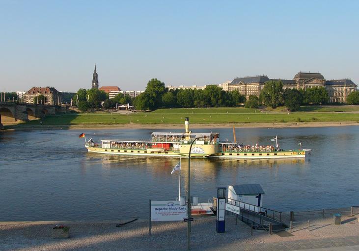 Keywords: Dresden-Elbe03.jpg Die Elbe in Dresden Sachsen Deutschland Im Bild Der Schiffsanleger Terrassenufer im Hintergrund die Dresdener Neustadt mit Dreikönigskirche links und das Sächsische Finanzministerium rechts The Elbe River in Dresden Saxony Germany View to the dock Terrassenufer in the background the Dreikönigskirche left and Saxon treasury right own Nikater 2005-09-05 Own work all rights released Public domain 51 053698 13 740592 Heading N Elbe in Dresden Sächsische Dampfschiffahrt Sächsisches Staatsministerium der Finanzen Stadt Wehlen ship 1879