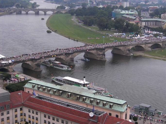 Keywords: Dresden-Frauenkirche-View.from.top.07.JPG Dresden View from Frauenkirche Bridge across Elbe closed to regular traffic due to City festival own photo taken myself 2005-08-21 Ingersoll Augustusbrücke Views from Frauenkirche Dresden
