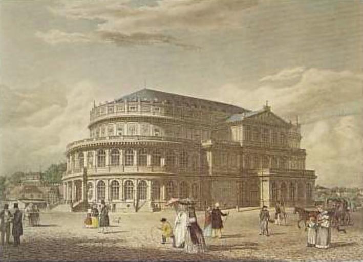 | Keywords: Dresden Hoftheater.jpg F E Schmidt Semper's first opera house in Dresden opened 1841 Etching coloured by hand Dimensions 21 3 cm x 26 5 cm plate H R Beard Collection; Victoria and Albert Museum - Theatre Museum London Museum number S 3889-2009 http //collections vam ac uk/item/O1153810/print-etching-h-beard-print-collection/ Link scanned from a postcard century 19 F E Schmidt PD-old-100 Königliches Hoftheater Dresden Theatre collection of the Victoria and Albert Museum Prints in the Victoria and Albert Museum |