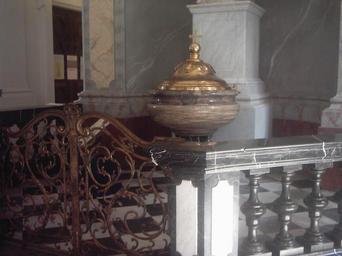 Keywords: Dresden Kathedrale St. Trinitatis Taufbecken.JPG en Baptismal Font of the catholic Cathedral of the Holy Trinity Dresden de Taufbecken der katholischen Kathedrale St Trinitatis Hofkirche Dresden own Zairon 2006-04 Interior of the Hofkirche Dresden Cc-zero |