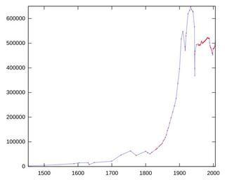 | Keywords: DresdenPopulationHistory.svg created with Octave/GNUplot source of data http //de wikipedia org/wiki/Einwohnerentwicklung_von_Dresden en wikipedia 2007-12-25 Nillerdk wikipedia en original upload log page en wikipedia DresdenPopulationHistory svg 2007-12-25 18 28 Nillerdk 600×480× 15460 bytes <nowiki>created with Octave/GNUplot source of data http //de wikipedia org/wiki/Einwohnerentwicklung_von_Dresden</nowiki> Statistics of Dresden | ||||