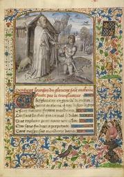 | Keywords: Dreux Jean (Flemish, active 1445 - about 1446) - A Young Knight in Armor Kneeling in Prayer before Saint Anthony - Google Art Project.jpg Tempera colors gold leaf gold paint and ink on parchment http //www getty edu/legal/copyright html special url_id AwEXk1ua2C1jlg PD-old-100 MS LUDWIG IX 8 Getty museum - Arenberg Hours Google Art Project works by Dreux Jean Miniatures of Saint Anthony the Great Medieval miniatures of birds Coats of arms in medieval miniature Kneeling in prayer in art Tau cross and bell of St Anthony |