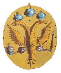 | Keywords: Drevnosti RG v1 ill023b.jpg ru Д евности Российского госуда ства Antiquities of Russian country 1846 1853 Т 1 Иллюст ато Солнцев Фёдо Г иго ьевич Об азок и к ест тельник п иписываемый Дмит ию Самозванцу а эстампе под 22 изоб ажены в нату альную величину 1 д евние складни; 2 тельной золотой к ест или тельник; 3 двуглавый о ел на золотой бляхе богато ук ашенной финифтью Все сии д агоценности х анятся у г афа усина-Пушкина и по п еданию п инадлежали Дмит ию Самозванцу а складнях оп авленных в золото с п ек асной финифтью изоб ажены искусной кистью в византийском стиле Богомате ь с П едвечным ладенцем и Святитель иколай не в саккосе как написан он на д евней иконе в Ба е но в к есчатой фелони и омофо е одной укой благословляющий а д угой де жащий Евангелие Ство чатые складни с ушками по-видимому назначены были для ношения на пе сях а четве очастном тельнике изоб ажен восьмичастный к ест без аспятого на нем Спасителя и без г ивны или цаты какая видна на с едок естии у подобных к естов XVII в ад к естом написано Ца ь Славы у концов его Icс Х ика у подножия Л Р Б т е «место лобное ай бысть» Как на лицевой так и на об атной сто оне вы езаны мелкой вязью слова ве оятно молитвы Если действительно этот к ест п инадлежал Лжедмит ию то можно бы его п изнать за тот самый кото ый он показал в Б агине Адаму Вишневецкому как будто данный ему к естным его отцом Иваном стиславским Что же касается до бляхи с двуглавым о лом увенчанным т емя ко онами без ездеца или всадника на г уди ве оятно она составляла ук ашение ца ской утва и 1846 1853 http //www runiverse ru/bookreader/book403605/ page/61/mode/1up Солнцев Фёдо Г иго ьевич PD-Art Antiquities of Russian country - Volume I Files uploaded by Shakko from various sources False Dmitriy I House of Musin-Pushkin Coats of arms of the Tsardom of Russia |