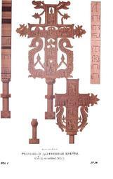 | Keywords: Drevnosti RG v1 ill035.jpg ru Д евности Российского госуда ства Antiquities of Russian country 1846 1853 Т 1 Иллюст ато Солнцев Фёдо Г иго ьевич Де евянные к есты х анятся в О ужейной палате Изоб аженные на эстампах 33 и 34 езные на де еве к есты х анящиеся в Импе ато ской публичной библиотеке и в московской О ужейной палате п едставляют нам памятники езного искусства коим изд евле славились византийцы и давно занимались славяне Рассмот им эти п оизведения в связи с самим художеством и его исто ией Особенным п едметом досужества афонских монахов было это искусство По свидетельству И С Ассемани «они вы езывали с п евосходною об онною аботой иконы и к есты из бука кед а и д угих де ев на кото ых изоб ажали аспятого Спасителя Богомате ь двунадесятые п аздники и азных святых Восточной П авославной Це кви Таким изделием ук ашая свой досуг иноки снискивали себе п опитание» К этому свидетельству п исоединим д угое не менее важное кото ое сообщает нам г еческий в ач XVII в Иоанн Комнин обоз евавший Святую го у; он гово ит что «болга ы и усские изд евле любили уп ажняться в иконописи и езьбе что искусство их отличалось особенным пошибом заимствованным от духа и на одов отечества» Поскольку пошиб или стиль этот был иконный основанный на д евних об азцах и подлинниках то и езьба запечатлена тем же ха акте ом каким иконопись болга ская и усская К оме письменных свидетельств в России еще уцелело много азных памятников г еческой езьбы кои п оявляют дух и ха акте сего искусства посвященного св ве е Это искусство бывшее под влиянием це кви подчинялось ее заветным п еданиям и уставам Так как Восточная п авославная це ковь отве гала всякое изваяние и слияние истуканы го ельефы согласно с заповедью во Вто озаконии XVII 15 где п едается п оклятию «сотво ивший изваяние и слияние» то она допускала одни только изоб ажения половинчатые или в полтела т е ельефы ежду тем Западная це ковь ввела в обычай изваяния святых в нату альную величину из де ева и камня го ельефы alto relievo к углые фигу ы коими ук ашала не только костелы и капеллы но и площади и пе ек естки Резное художество искони любимое усским на одом сначала было о удием идолопоклонства а потом с насаждением на Руси х истианской ве ы об ащено было на изоб ажение досточтимых ее п едметов и ук ашало вычу ными и затейливыми о наментами внешность и внут енность х амов Божьих кои в д евности ст оили по большей части де евянные а самых избах к естьянских видим азные узо ные по езки обличающие досужество ловкость и замысловатость масте ов От византийских художников Киев получил пе вые об азцы езных на де еве кости и камнях икон панагий и к естов коим под ажали усские Там и доныне существует это художество доставляющее богомольцам езные на кипа исе к есты и об аза Оно п оникло и в овго од славившийся в XVI в своими езцами или езными масте ами кои налагали лицо на камень т е пок ывали езьбой и поли овали; оттуда иногда вызывались они в оскву для ук ашения це квей и госуда евых палат а эстампе 4 п едставлены д евние п оизведения езьбы сох анившиеся в изнице новго одского Софийского собо а А хангельск также славится с давних в емен езьбой на кости В самой оскве в числе ца ских художников и емесленников асте ской палаты находились и езчики на де еве; из них известны своими п оизведениями в XVII в Конд атий Иванов и Пет Ремезов По госуда еву указу они вы езывали не