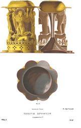 | Keywords: Drevnosti RG v1 ill056.jpg ru Д евности Российского госуда ства Antiquities of Russian country 1846 1853 Т 1 Иллюст ато Солнцев Фёдо Г иго ьевич Утва ь сия названа в надписи на исунке и в собо ной описи как увидим а тосной А тос Tсфпт квасной хлеб особенной молитвой освященный в день Св Пасхи аздается на оду в субботу на светлой седмице но хлеб влагаемый в панагию есть бого одичный Что же касается до панагии Всесвятой или П есвятой т е Бого одицы то под ее названием азумеется не только т е- угольная частица благословенного хлеба посвященная имени П ечистой и П есвятой Бого одицы но и складной аковинооб азный ковчежец вмещавший в себе сию частицу ciborium какой здесь изоб ажен За столом она возносилась с молитвословием и по азд облении ее вкушаема была п исутствовавшими Для такого действия в Уставе це ковном положен особенный чин доныне исполняемый в некото ых монасты ях и пустынях П и византийском дво е как свидетельствует нам Кодин этот об яд был то жественнейший «По снятии кушанья со стола гово ит он когда Доместик п иносит хлеб в панагиа е на блюде пок ытом пеленою с изоб ажением П есвятой Бого одицы тогда Импе ато встает; потом пе вейший из сидящих за столом п иняв панагиа ставит его т апезу и возвысив хлеб подает его ч ез Доместика Импе ато у Как только Импе ато п иложит к устам этот хлеб все возглашают ему многая лета» Под ажание этому об яду вст ечаем и п и оссийском дво е в XVII столетии Так на одильные ца ские столы несли пе ед пат иа хом панагиа на коем он возносил бого одичный хлеб по уставу Хлеб сей возвышаем был не только за т апезой как значится из толкования Симеона Солунского но и во всех важных обстоятельствах жизни если кто «хочет отъити на службу или в путь шествовати или по водам плавати во всех наших т ебах и обстояниях помощницу тую и х анительницу сущую тве дейшую п изываем и множайшую получаем от возношения хлеба сего помощь» О значении данном впоследствии панагии как высокому отличию духовенства сказано в своем месте5 Панагия же вмещавшая бого одичный хлеб для азличия от напе сной именовалась столовой т апезной иногда а тосной QсфхцпсЯпн п инимая а тос в общем его знаменовании Изоб аженная здесь на исунке в це ковной описи 1804 г новго одского Софийского собо а так обозначена «Под 875 панагия а тосная се еб яная золоченая внут и вы езана Т оица с Воплощением наве ху к ышки в к уге Вознесение вольящатое т е литое По к аям скань золочена а под панагиею четы е Ангела литые золоченые поддон на литых львах подделан медью местами поломан; весу в ней с медью одиннадцать фунтов» «Воплощением» в описи назван об аз Богомате и с П едвечным ладенцем обыкновенно именуемый Знамением П есвятой Бого одицы; вок уг ее по к аям вы езан и мос Честнtйшuю хе uвимъ и славнtйшuю во їстиннu се аfимъ безъ їстлtниm Бога слова ожьдшuю сuщuю Бц`u тm величаемъ Складной ковчег влагается све ху в стоянец подде живаемый с четы ех сто он четы ьмя литыми ангелами; они попи ают львов кои один у д угого де жа в зубах хвост таким об азом соединяются Из этой купы фигу слагается целое стоянец для панагии К углый поддон по ве хнему ободку увенчан ф изом из цветов О в емени и месте соо ужения этой панагии авно и о соо удителе свидетельствует нам самая на ней надпись Въ лtто s` ное f` сотное м` д`е6 индикта д`и мц`а семтб m д`i дн`ь на вз`виженье чт`нагw к `та ство ена бысть понагиm си повелtньемъ п есв`щнго АB хиєп`к