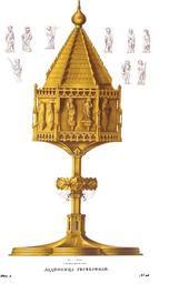 | Keywords: Drevnosti RG v1 ill065.jpg ru Д евности Российского госуда ства Antiquities of Russian country 1846 1853 Т 1 Иллюст ато Солнцев Фёдо Г иго ьевич Ладанница се еб яная П инадлежностью к кадилу была изоб аженная здесь ладанница arcula thuraria кото ую носил диакон и а хидиакон на малом и великом выходе как видно на ста инных об азах Св а хидиаконы Стефан Лав ентий и Евпл иногда изоб ажаются на алта ных две ях це кви с ладанницей в левой уке и с кадилом в п авой как знамениями своего служения П едставленная здесь на эстампе се еб яная ладанница имеет подобие шат ового х ама утве жденного на подножии; внешние ее стенки ук ашены изоб ажениями азных святых с их утва ями Узо очность о наментов и отделка обна уживают замысловатость и ловкость художника а стиль вообще сего памятника свидетельствует о д евности его Сходная с нею ладанница XVII в в овоспасском монасты е соде жит в себе два помещения одно для ладана д угое для тимьяна или фимиама кото ый в чине освящения це квей также называется воскомастикою от соединения воска с мастикой и ладаном 1846 1853 http //www runiverse ru/bookreader/book403605/ page/61/mode/1up Солнцев Фёдо Г иго ьевич PD-Art Antiquities of Russian country - Volume I Tabernacles from Russia Files uploaded by Shakko from various sources Uploaded with UploadWizard |