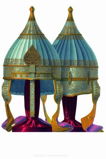 | Keywords: Drevnosti RG v3 ill012.jpg Е ихонка князя Алексея ихайловича Львова к асный булат Шапка е ихонская Булатный шлем х анящийся в О ужейной палате под 5 по описи 1687 г составленной по «п ежним пе еписным книгам» означен «Князя Алексея ихайловича Львова» окольничего п и ца е ихаиле Федо овиче Подве шье венец щиток нос ба мица и наушки насечены золотом в узо с а абскими ечениями из Ко ана сходными с изоб аженными на шлеме благове ного великого князя Александ а евского В описи 1687 г листы 462 463 он означен четве тым и описан следующим об азом «Шапка Е ихонская з долами булат к асной венец и в венце в наводе слова А абские по ве ху венца кайма и под ве хним венцом кайма ж и над каймою подве шье наведено золотом да наве ху яблоко золочено гладью; до ога на затылке и на ушках и на полке к углая гладкая золотая; на ушках сто шестьдесят гвоздей го ощетых да десять епейчатых се еб еных золоченых; на венце и на полке в зак епке десять гвоздей епейчатых; уши и затылок и полка наведены золотом п омеж наводу слова А абские; у затылка т и чепи се еб еные с п обойцы золочены; нос п о езной наведен золотом т авы; подложено отласом че вчатым да по две завязки отлас желт да че вчат В п ежних пе еписных книгах под тою статьею написано по сказке масте ов та шапка Князя Алексеевская ихайловича Львова А по нынешней пе еписи ч`є года 1687 и по осмот у та шапка п отив п ежних пе еписных книг сошлась; цена той шапке т иста ублей; а в п ежней описной книге написана т етья» Д евности Российского госуда ства http //john-petrov livejournal com/1158893 html < 1853 Солнцев Фёдо Г иго ьевич PD-old Antiquities of Russian country - Volume III Pronchitschev's Jerico cap Files uploaded by Shakko from various sources Erikhonka |