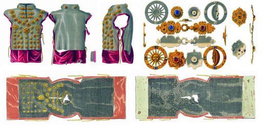 Keywords: Drevnosti RG v3 ill058-60 - Silver Chainmail Imeretin.jpg ru Се еб янная колчюга 16 янва я 1659 пода ена послами Име етинского ца я Александ а «Панцы ь се еб ен а по осмот у медной посе еб ен плащи медные золочены с каменьи достоканы да виниски; около опушка ба хатом че вчатым; подложен миткалями; цена двадцать ублев» en Silver chainmail from Imeretin king Alexandr Georgia Д евности Российского госуда ства < 1853 Солнцев Фёдо Г иго ьевич Author died more than 70 years ago - public domain PD-old Antiquities of Russian country - Volume III Mail armour Parade armour |