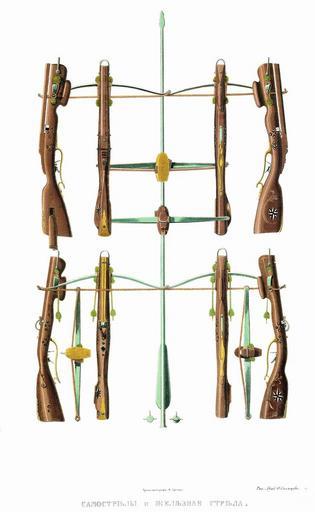 Keywords: Drevnosti RG v3 ill122 - Arbalets and Bolt.jpg en Russian arbalets and arrow ru Самост елы и а балетный болт Русское дело не позднее 17 века Д евности Российского госуда ства http //www belygorod ru/img2/Solncev/Used/mSamostrelyZhelStr jpg Солнцев Фёдо Г иго ьевич < 1853 PD-old Crossbows Medieval crossbows Antiquities of Russian country - Volume III Weapons of Russia |