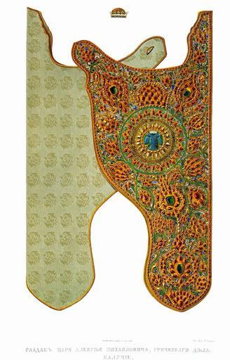 | Keywords: Drevnosti RG v3 ill125.jpg ru Саадак ца я Алексея ихайловича г еческого дела алучие Изоб аженный на исунках 125 и 126 саадак ца ьг адского дела сове шенно сходного с ба мами скипет ом и де жавой деланными как сказано в п иходо- асходной книге 1665 г п отив об азца диадимы Благочестиваго Г еческаго Ца я Константина а налучии в ободу ко оны над о лом означен 1656 г соответственный в емени п ивоза ца ьго одцами Иваном Ю ьевым и Дмит ием Астафьевым вещей относящихся к ца скому чину и воо ужению а налучии вок уг о ла следующая надпись на г еческом языке «Ца ю Х исте Вседе жителю подаждь с небеси п авославнейшему Ца ю благодать и победы на земли с о ужием сим на по ажение в агов исходящему дабы победоносным возв атиться со славою как некогда великому Ца ю Константину так и ныне Князю Алексею подаждь к естом победы над соп отивными исходящему Спасителю мой с о ужием п емногим» адпись на колчане «К естоносному Алексию Князю Х исте Спаситель помоги несущему лук и быст ые ст елы победы над неп иятелем» Из этой надписи видно что саадак также заказан был по об азцу налучия и колчана Константина Великого В описной книге ца ской О ужейной казны этот саадак записан следующим об азом «Саадак большаго на яду оп ава золотая п о езная с каменьем и с финифты озными подзо алтабас се еб ян; около налуча и колчана и попе ег колчана кайма золотая с гнездами в гнездах четы еста т идцать яхонтов че вчатых; с еди налуча к уг большой с еди к уга д угой к уг поменьше с подписью; се еди меньшова к уга о ел двоеглавой с ко уною наведен финифты около о ла в меньшом к угу в гнездах со ок восемь алмазов больших и малых да в большом к угу со ок восемь яхонтов больших и малых; пове х к уга ко уна в ко уне со ок пять алмазов да двадцать т и яхонта че вчетых; на налуче в четы ех местех в золотых гнездах четы е изум уда больших около их и по всему налучу и в бенди в гнездах же сто восемьдесят алмазов больших и малых да четы еста шестьдесят пять яхонтов че вчетых г аненых и нег аненых больших и малых; с еди колчана к уг с подписью в нем о ел двоеглавой с ко уною наведен финифтом; около о ла со ок четы е алмаза больших и малых; повыше к уга ко уна в ко уне шесть алмазов да десять яхонтов че вчетых в том числе один г аненой; на колчане ж в большом золотом плаще изум уд большой около ево и по всему колчану и бенди в гнездах золотых восемьдесят т и алмаза да сто шестьдесят яхонтов че вчетых больших и малых; т и чепи золотые плетеные у них по концам шесть т убочек золотые ж езные с кольцы п ивязаны за два кольца с п обойцы под п обойцами по плащику езные ж пос еди чепей пе едвигаетца т ойная п онизочка с финифты; в исподи колчана на донце золото езаны т авки; около налуча и колчана по к аем оботкано волоченым золотом подложено алтабасом се еб яным т авы золотые; пояс и помочь тесма шолк бел с се еб ом Ту ское дело; оп ава на поясу и на помочи золотая с каменьи и с финифты п о езная звенцами набо ная т идцать мест да на помочи поменьши тех шесть мест п яжа наконешник в звенах; на поясу и на помочи в гнездах золотых т идцать шесть изум удов да сто двадцать яхонтов че вчетых; звенца на поясу в т ех местех попо чены Подложен сафьяном че вчетым; всего в налуче и в колчане и на поясу по сказке и по счету золотаго дела масте а ихайла асыхина алмазов и яхонтов и изум удов больших и малых тысяча семь сот т и камений и по осмот у ч` года 1682 на кол