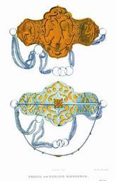 | Keywords: Drevnosti RG v3 ill143.jpg ru Решмы или конские налобники К числу множества ста инных богатых узд и муштуков кото ые х анятся в О ужейной палате п инадлежат и узденицы или конские начельные бляхи с цепочками называвшиеся также « ешмами» Относясь п еимущественно к великолепию уб анства ве хового коня золотые и се еб яные узденицы ук ашались финифтью и д агоценными камнями Из пятидесяти т ех сох анившихся уздениц изоб аженные на исунке 143 из п остых Ве хняя се еб яная золоченая с изоб ажением посе едине двуглавого о ла по сто онам льва и едино ога в описи О ужейной палаты под 42 Д евности Российского госуда ства http //john-petrov livejournal com/1190678 html Солнцев Фёдо Г иго ьевич < 1853 PD-old Antiquities of Russian country - Volume III Files uploaded by Shakko from various sources Horse harnesses in the Museums of Moscow Kremlin Horse armours |