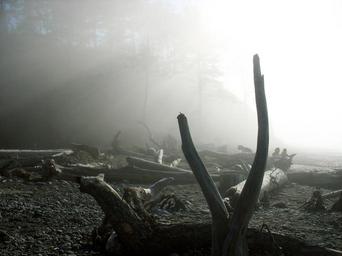 Keywords: driftwood beach fog sun ray mist ocean nature coast park pacific shore drift sea outdoor foggy light washington sequim daytime