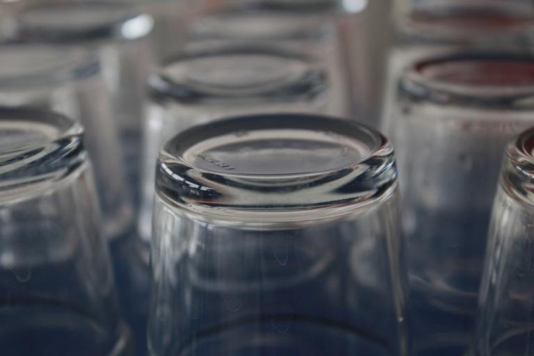 Keywords: drinking glass rinsed clean turned around