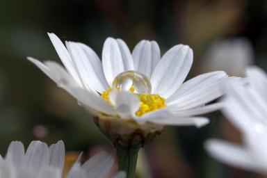 Keywords: drip macro flower drop of water water wet close marguerite margarite nature