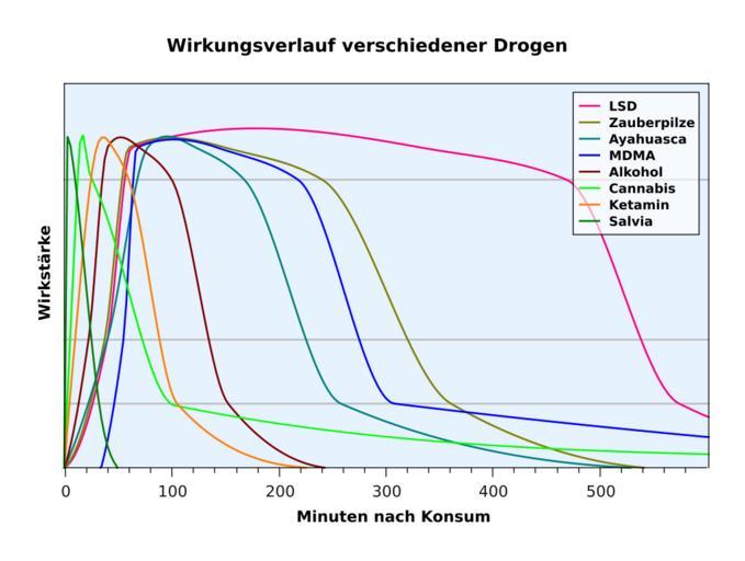 | Keywords: Drogen-wirkungsverlauf.svg de Wirkungsverlaufskurven verschiedener Drogen Basiert auf gemittelten Daten von erowid org en Effect graphs for various drugs Based on averaged data from erowid org own LordToran 2010-12-28 Cc-zero Psychoactive drugs harm diagrams and charts Created with QtiPlot |