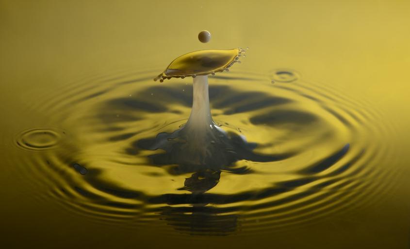 Keywords: drop crown milk macro impact experiment yellow abstraction collision