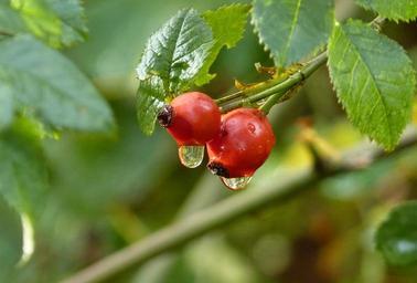 Keywords: drop of water water drip wet clear dew close dewdrop nature raindrop rose hip red autumn rose plant