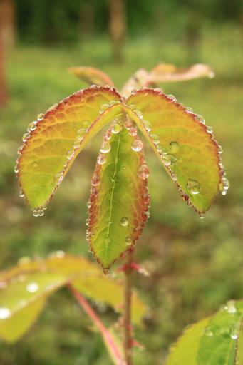 Keywords: drops green leaf leaves raindrops rose transparent water nature plants