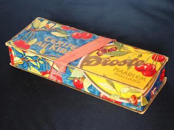 Keywords: Droste Cerises au Kirsch lange smalle doos, foto2.JPG Photographed at a collector of Droste For info see tincollectors nl or email info tincollectors nl own 2013-12-15 14 34 49 Alf van Beem CC-zero Trademarked Droste