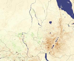 | Keywords: Drought in Ethiopia, Natural Hazards DVIDS833583.jpg en After a record harvest in October 2007 Ethiopia settled into a drought Little rain fell during the October and November rainy season and rainfall was predicted to be below normal in the March-to-May rainy season as well said the Famine Early Warning System Network <p>The impact of the poor rainfall is evident in this vegetation image made with data collected by the Moderate Resolution Imaging Spectroradiometer modis gsfc nasa gov MODIS on NASA's terra nasa gov/ Terra satellite between March 5 and March 20 2008 Areas where vegetation was less healthy or more sparse than average are brown average growth is cream-colored and better-than-average growth is green An arc of brown stretches across central Ethiopia roughly following the chain of lakes that line the Great Rift Valley </p> <p> Ethiopia's economy is dominated by agriculture; eighty percent of total employment in the country of about 76 5 million people is in agriculture Food security and famine are recurring problems In parts of southern Ethiopia the present drought has extended through three rainy seasons In these areas the poor rainfall could lead to widespread extreme food insecurity the Famine Early Warning System Network warned In early March the United Nations requested four million dollars to provide aid to more than one million people in Ethiopia reported Reuters </p> <ul><li>Famine Early Warning System Network 2008 http //www fews net/pages/country aspx gb et l en Ethiopia U S Agency for International Development Accessed April 4 2008 </li> <li>Reuters 2008 March 5 africa reuters com/top/news/usnBAN551308 html UN calls for million to fight Ethiopia drought Accessed April 4 2008 </li> <li>U S Central Intelligence Agency 2008 https //www cia gov/library/publications/the-world-factbook/geos/et html Ethiopia <cite>The World Factbook </cite> Accessed April 7 2008 </li> </ul><p>NASA image created by Jesse Allen Earth Observatory using data provided by Inbal Reshef www pecad fas usda gov/glam cfm Global Agricultural Monitoring Project Caption by Holli Riebeek </p> NASA Identifier ethiopiandvia_tmo_2008065 <br>Unit NASA 2011-08-03 Glenn Research Center https //www dvidshub net/image/833583/drought-ethiopia-natural-hazards 833583 2013-02-08 03 12 WASHINGTON D C US PD-USGov United States Agency for International Development Images from DoD uploaded by Fæ |