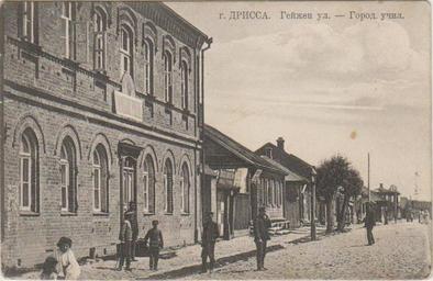 Keywords: Drysa, Hiejženaŭskaja. Дрыса, Гейжэнаўская (1912).jpg Д ыса Drysa вуліца Гейжэнаўская vulica Hiejženaŭskaja Вучэльня a street in Verkhnedvinsk Belarus 1 www delcampe net <br> 2 Целеш В Га ады Бела усі на ста ых паштоўках енск Бела усь 2001 author < 1914 PD-old-100 History of Drysa |