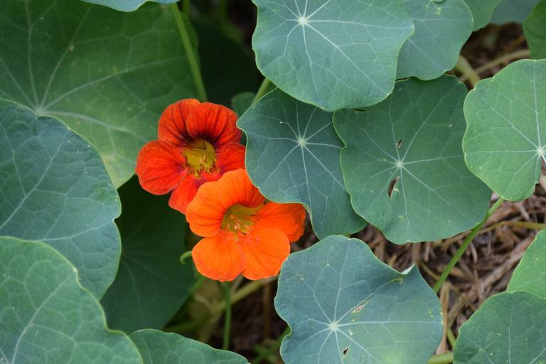 Keywords: nasturtiums nasturtium orange flower orangeflower flowers plant flower outdoor organic pattern pattern Nasturtium flowers Nasturtium flowers